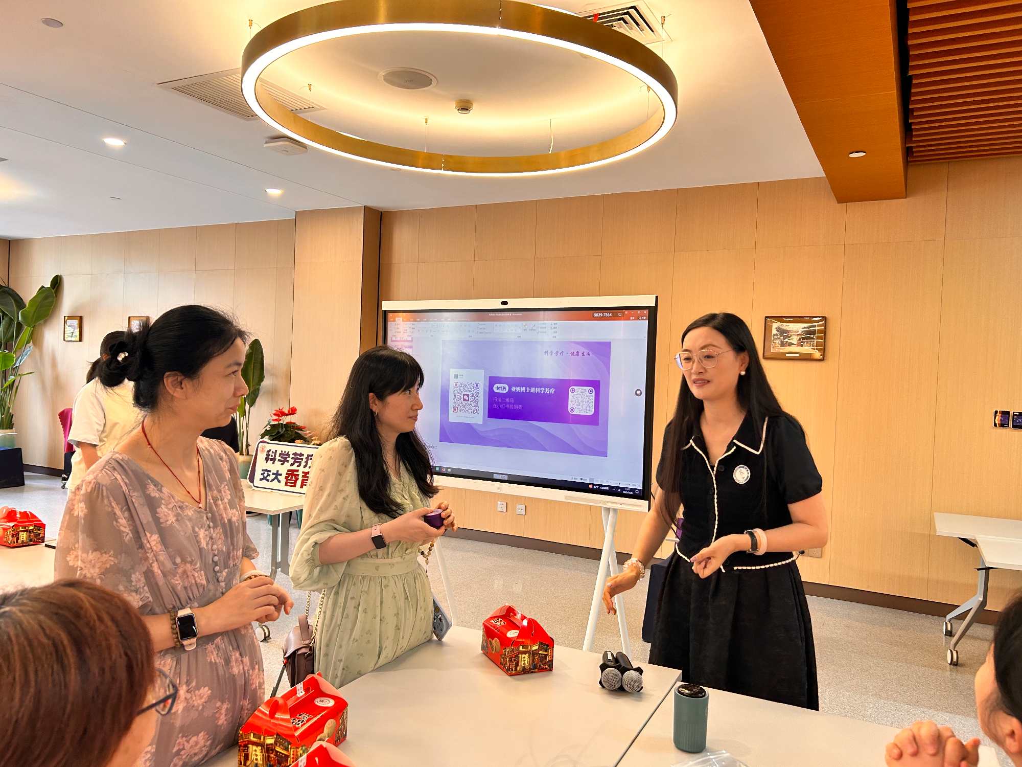 活动特邀上海交通大学设计学院副研究员、科学芳疗研究室负责人吴亚妮老师主讲。吴老师结合自身专业及研究成果,系统讲解精油分类、功效与使用禁忌,还针对教职工日常办公场景,分享助眠、护肤等实用芳香疗法技巧,互动环节中细致解答疑问,让大家对 “科学芳疗” 有了清晰认知。