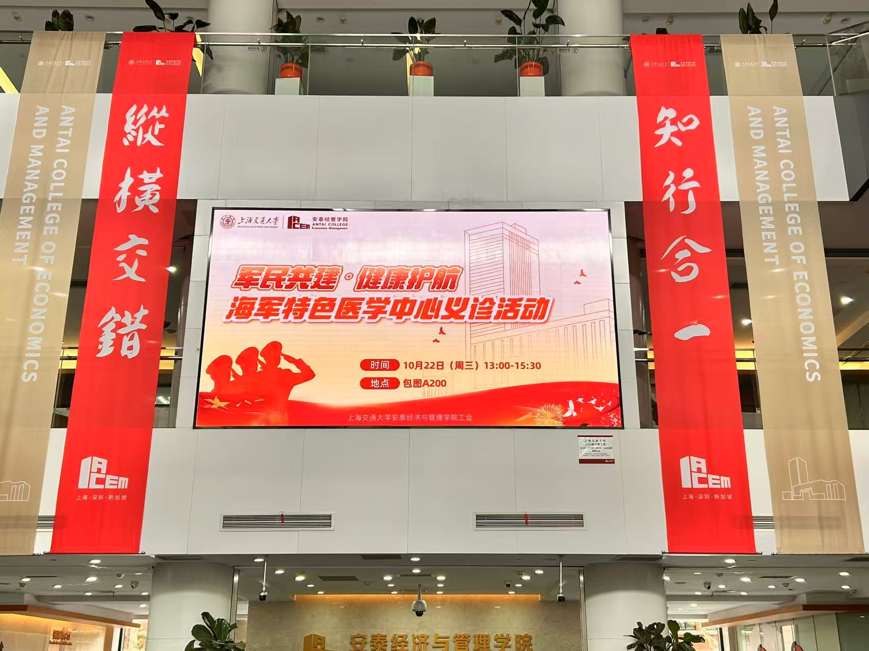 2025年10月22日下午,上海交通大学安泰经济与管理学院联合中国人民解放军海军特色医学中心,在包图A200成功举办“军民共建・健康护航”公益义诊活动。来自海军特色医学中心的中医内科、中医妇科、中医骨科、中医肿瘤科、康复理疗科、甲乳外科、皮肤科、心内科专家团队现场坐诊,以专业的医疗服务为教职工送上健康关怀。更特别邀请到海军军医大学附属第一附属医院(长海医院)中医妇科主任医师、中医专科教研室副主任翟东霞教授,为女性教工带来专属健康关爱。活动还吸引到了来自凯原法学院、国际与公共事务学院、高级金融学院的教工参与。义诊专家们精湛的医术获得了教工们的一致好评。