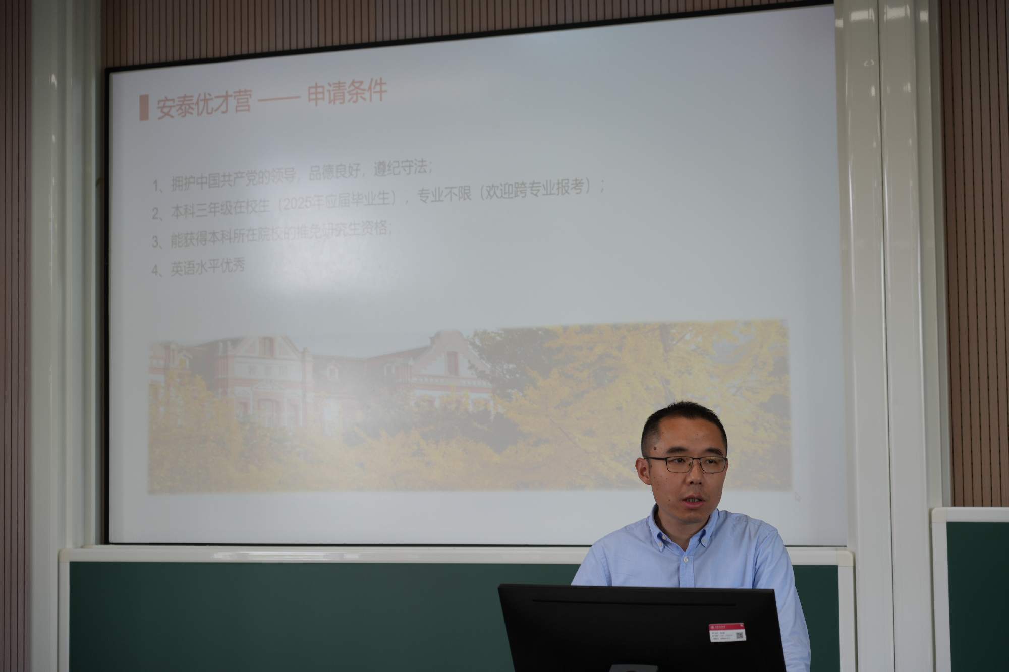沈刃奇老师介绍了学院硕士、博士招生的基本政策,解读了管理科学与工程、工商管理学的硕士、博士项目的主要课程体系,强调其系统性、前沿性和国际化等特点。在谈及毕业生去向时,他通过丰富的数据和案例,展示了学院毕业生在多个领域中的出色表现。沈老师还强调学院不仅注重学生的学术培养,更积极为学生的职业发展提供全方位的支持和指导。