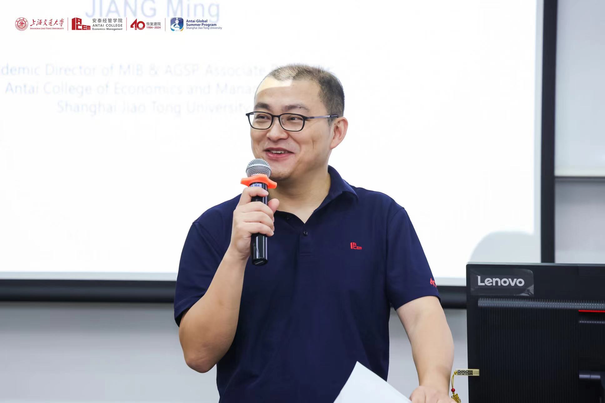 随后,项目学术主任江明教授在致辞中表示:“今年的学员背景非常国际化和多元化,感谢大家对安泰全球暑期项目的关注和支持。同时,学院对项目的课程设置投入了很多的资源,比如给学员提供了充分的线上学习资源(DBIC线上学习平台)、课堂案例学习、以及和安泰明星师资和企业高管的面对面交流机会,希望打造具有安泰特色的“中国商务”课程。“