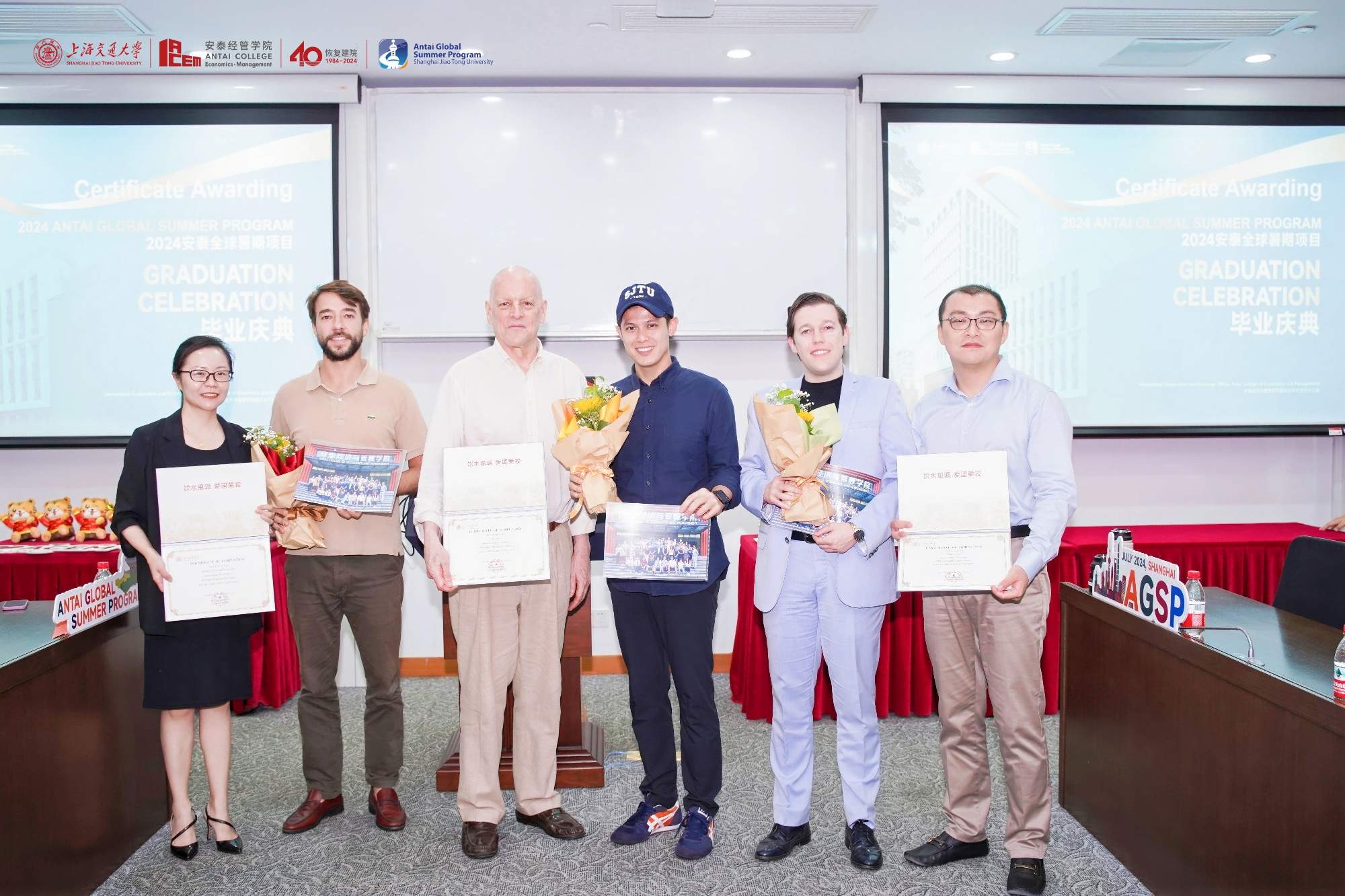 7月19日,2024年安泰全球暑期项目(Antai Global Summer Program, 简称AGSP)结束了为期三周的课程和活动。来自18个国家的40名中外学员顺利完成三周的沉浸式“中国商务与文化”学习之旅,结合项目的课堂所学、企业参访所悟、文化体验所感,做出了精彩而凝练的小组毕业汇报,收获了第一份上海交通大学颁发的证书。