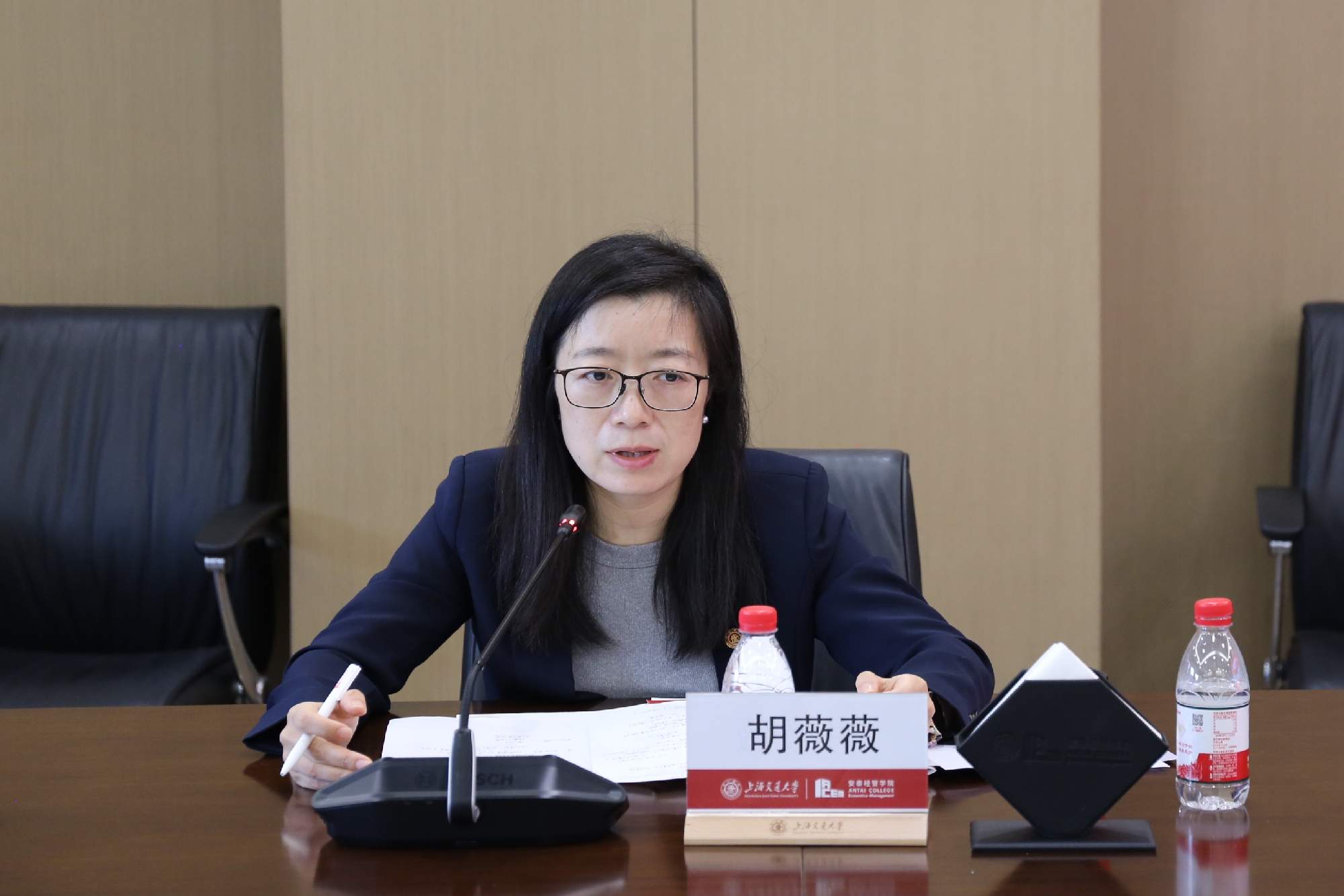 6月24日下午,上海交通大学安泰经济与管理学院在徐汇校区包兆龙图书馆B209会议室召开深入学习贯彻中央八项规定精神学习教育(以下简称学习教育)研讨交流会。校党委副书记、副校长胡薇薇出席会议,学院领导班子成员参加会议,会议由学院党委书记姜文宁主持。