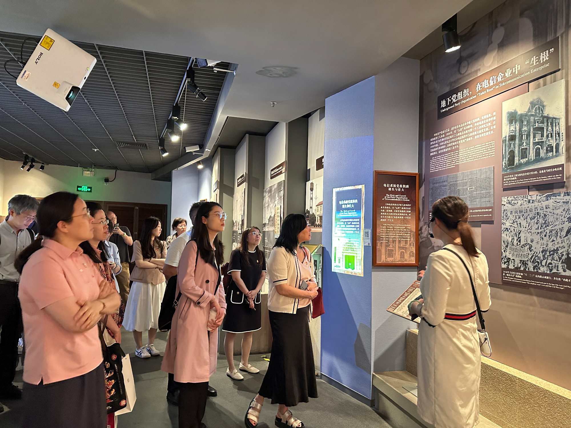 党员同志们首先来到上海电信博物馆参开展了一场别开生面红色通信微党课。这座始建于1921年的优秀历史建筑见证了我国通信事业的发展与变革。从早期的老式发报机、手摇电话机到如今引领时代的5G技术,丰富的展品、历史影像和互动体验连缀起电信技术的发展历程。这里,我们缅怀了为革命事业英勇献身的通信英雄李白烈士。他发出的“永不消逝的电波”,激励着一代又一代人。在体验区,党员们还亲自尝试了操作老式发报机,感受那嘀嘀嗒嗒的摩尔斯电码,仿佛穿越时空,触摸到了那段惊心动魄的红色通信历史,体会了早期通信工作的艰辛与不易。在参观过程中,大家不仅见证了通信技术从无到有、从落后到先进的巨大飞跃,更深刻体会到了通信人在不同历史时期所展现出的艰苦奋斗、勇于创新的精神。