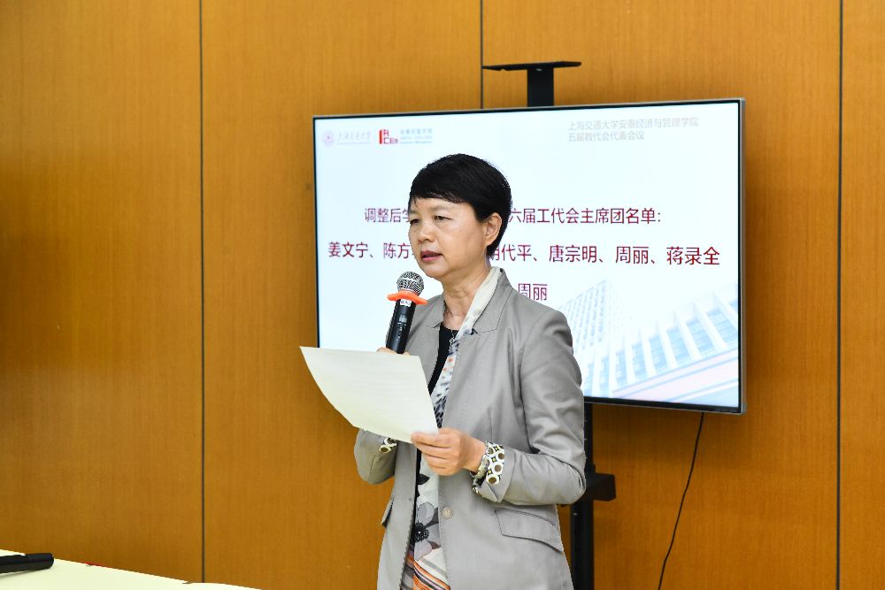 4月27日,上海交通大学安泰经济与管理学院五届教代会代表会议在徐汇校区包图B200召开。会议的主要议题是学校八届教代会暨十三届工代会学院正式代表选举与学校十三届工代会两委委员第二轮候选人提名以及院领导对学院五届教代会三次会议代表提案的反馈,会议由学院工会主席周丽主持。