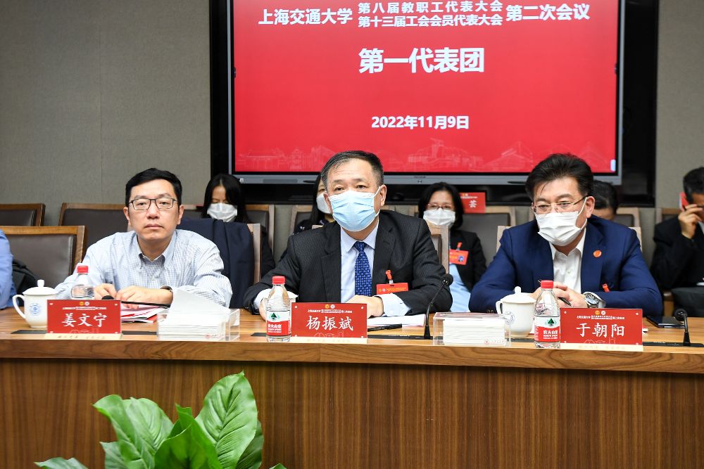 11月9日下午,上海交通大学第八届教代会暨第十三届工代会(以下简称“双代会”)第二次会议第一代表团分组讨论会在闵行校区新行政楼A307举行,校党委书记杨振斌、校工会主席于朝阳出席会议。讨论会由校“双代会”第一代表团召集人、安泰经济与管理学院党委书记姜文宁主持。